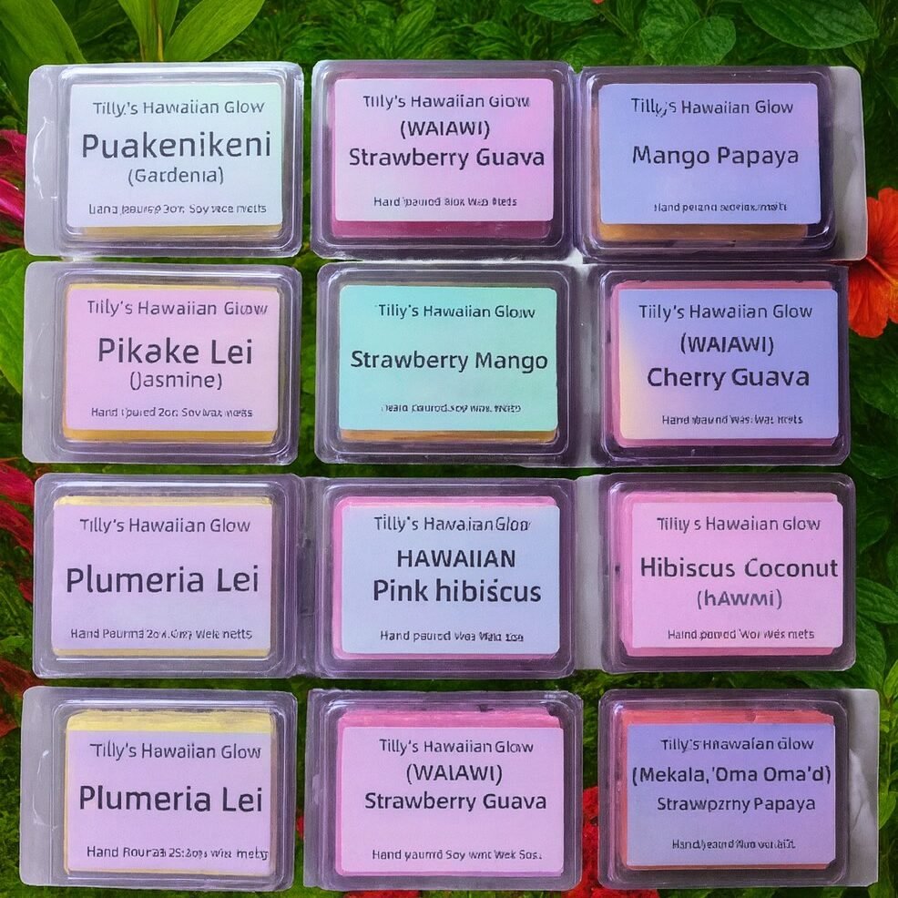 Transform your space with Tilly’s Hawaiian Glow Soy Wax Melts. Hand-poured in North Dakota, these clean-burning, non-toxic soy wax cubes deliver the authentic, tropical aromas of the Hawaiian Islands.